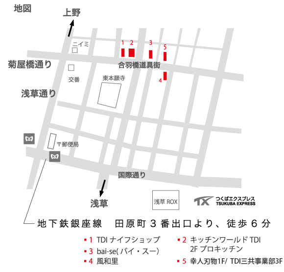 TDI operates seven stores in Kappabashi, Asakusa, Tokyo, offering carefully selected kitchenware from around the world, chosen by our buyers.